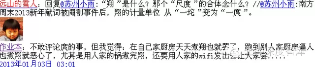 477万粉丝的新浪微博写手“作业本”在周四(1月3日)写道:“不敢评论庹(震)的事,但我觉得:在自己家厨房天天煮翔(即煮粪便)也就罢了,跑到别人家厨房逼人也煮翔就恶心了,尤其是用人家的锅煮完翔,还要用人家的wifi发出去让大家尝.....”。网友“拾玖畵荆楚”跟帖解释称:“这说的是广东某部长,逼良为娼,致使南方某报的贺年词,用自己的贺年词。被强奸了。”