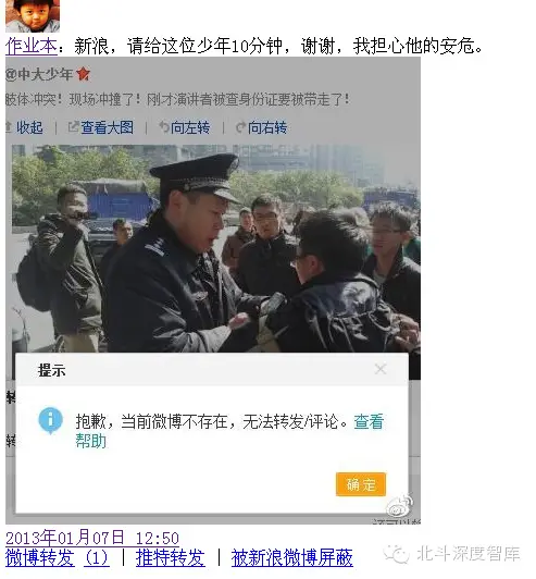 2013年1月7日,作业本借南周事件发新浪微博煽动社会动乱: