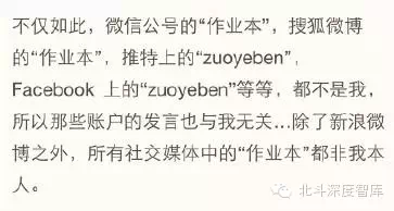 然而,作业本却在“推责文”中强调:【除了新浪微博之外,所有社交微博媒体中的“作业本”都非我本人。】笔者《一个作业本,三百秦火火》一文的相关结论正是说【腾讯“作业本”账号先后有不同人管理】,是你的【备胎账号】,与你关系密切但并非等于你本人。