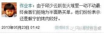 2013年05月23日 12:09 作业本又发表新浪微博:【建议那些信邱少云、赖宁为英雄的丿们,不要只停留在信的层面,应该贯彻到自己的实际行动中去!】这是讽刺相信邱少云、赖宁为英雄的丿们应用实际行动去当烤肉。