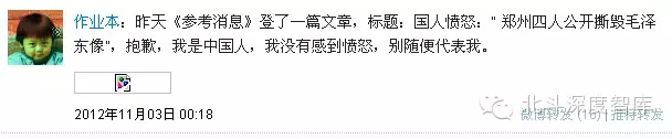 【作业本:昨天《参考消息》登了一篇文章,标题:国人愤怒:“ 郑州四人公开撕毁毛泽东像”,抱歉,我是中国人,我没有感到愤怒,别随便代表我。】