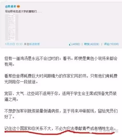 2013年6月20日,作业本在新浪微博发表《写给即将走进大学的童鞋们》一文,核心思想是如下几段: