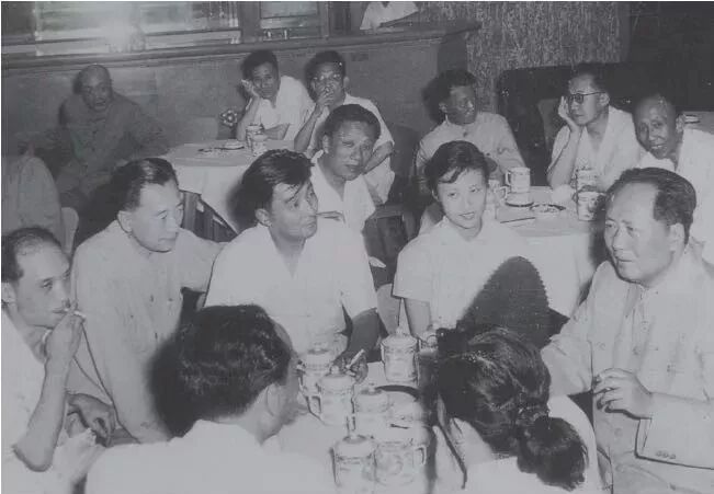 图四:与毛泽东交谈者,正面左起依次为:应云卫,赵丹、黄宗英,与黄宗英相对的女性为黄晨。(徐大刚摄)