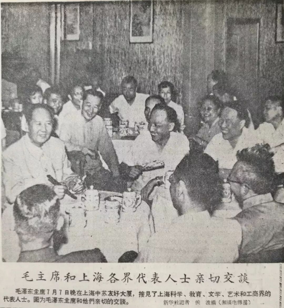 巧的是,据正式记载,这次会见恰恰有罗稷南在场。一共有陈铭珊、漆琪生、谈家桢、赵丹等 36位各界人士。7月 9日的《文汇报》以《毛泽东主席在上海接见文教工商界代表人士,并进行亲切交谈两小时》为题报道了此事,并详列了参加这次座谈的具体名单,但没有周谷城。显然,这次也不属于《鲁迅与我七十年》所述的那场毛泽东同周谷城、罗稷南等具有聊天性质的座谈。