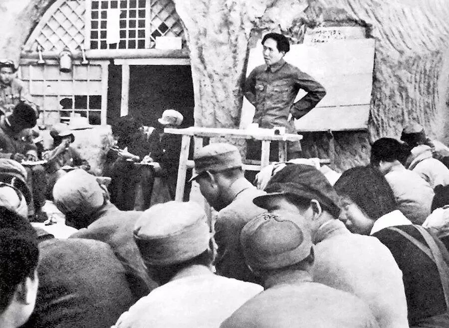 1938年5月,毛泽东在延安鲁迅艺术文学院作报告。(资料图片)