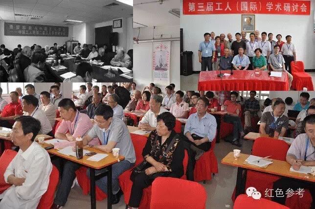 图5:鉴于当年物价上窜对工人生活的影响,中国工人网于2011年4月30日在北京举办了主题为“通货膨胀与中国工人状况”的第二届工人学术研讨会(见本图左上角)。2013年5月25日,中国工人网召开了第三届工人学术会议,邀请了中国的部分新老工人以及关注工人事业的朋友,同六位来自德国的社会学家、劳工问题专家以及工会干部就共同关心的问题进行了为期两天的交流。