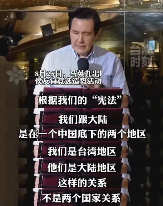 于是,就有了马英九的这一段话:我们跟大陆是在一个中国底下的两个地区,我们是台湾地区,他们是大陆地区,这样的关系不是国与国的关系。
